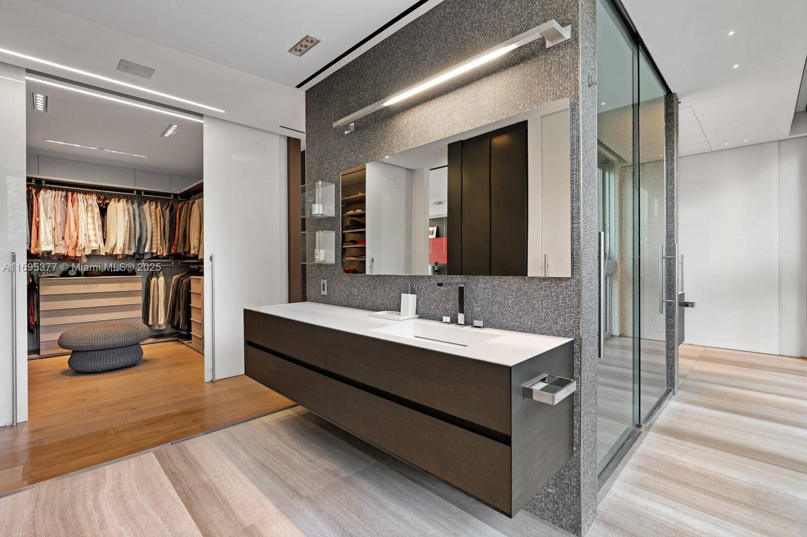 Welcome to this contemporary marvel on prestigious guard-gated Hibiscus Island, designed by architect Reinaldo Borges & famed landscape artist Raymond Jungles! Perfectly positioned on a 1/2 acre double lot w/122' of prime WF & breathtaking skyline views, this estate truly blurs the line of indoor/outdoor living. Soaring ceilings & a masterfully curated floorplan showcase 5 grand bedrooms, 5.5 baths, & exquisite entertaining spaces throughout. The gourmet kitchen, equipped w/high-end appliances, flows seamlessly into the elegant dining area. The lavish primary suite features dual bathrooms & closets, ensuite office, & private terrace w/sweeping views. Unrivaled amenities include Crestron home system, elevator, sauna, Bowers/Wilkins cinema, rooftop terrace, whole home generator & more!